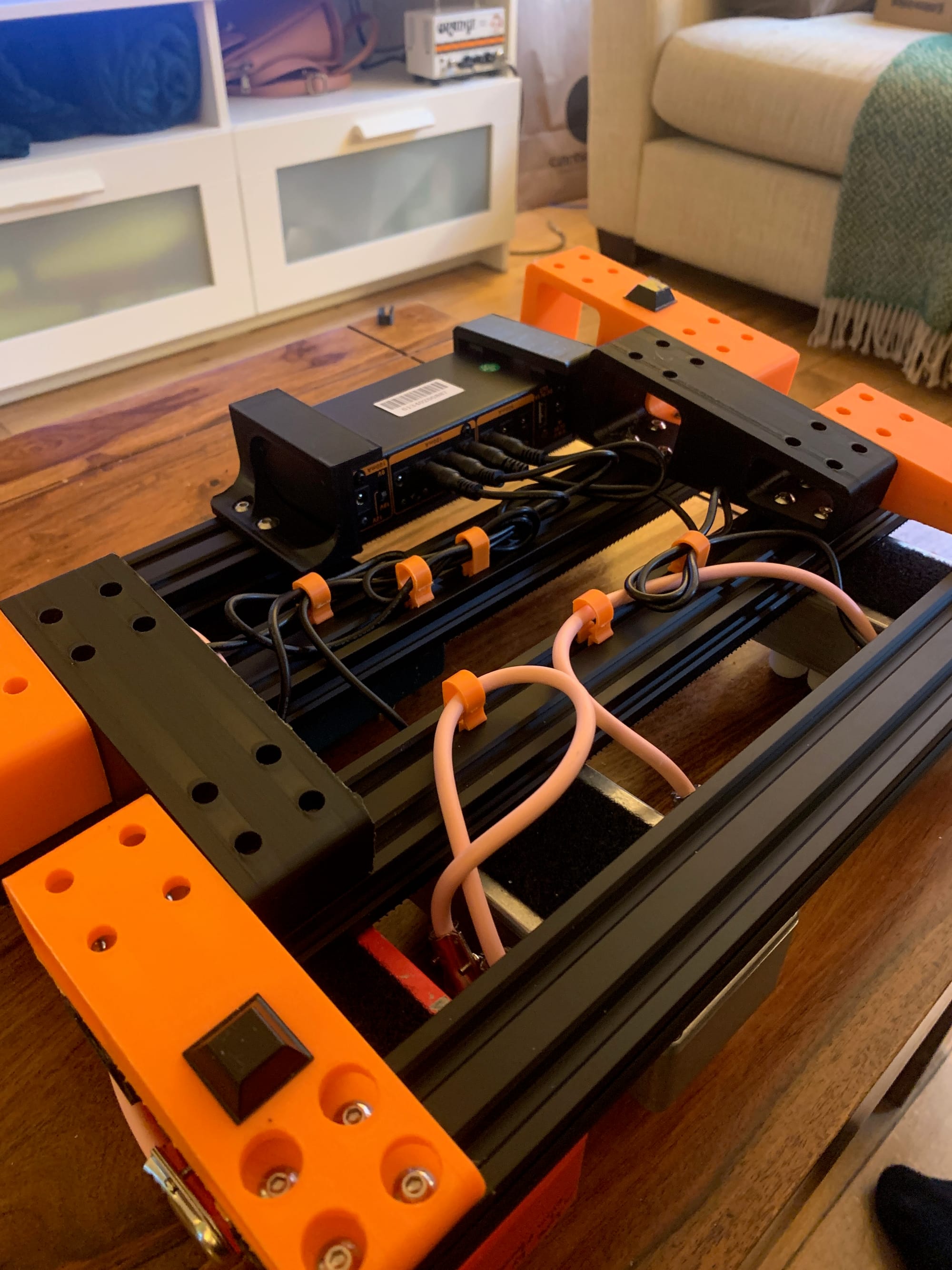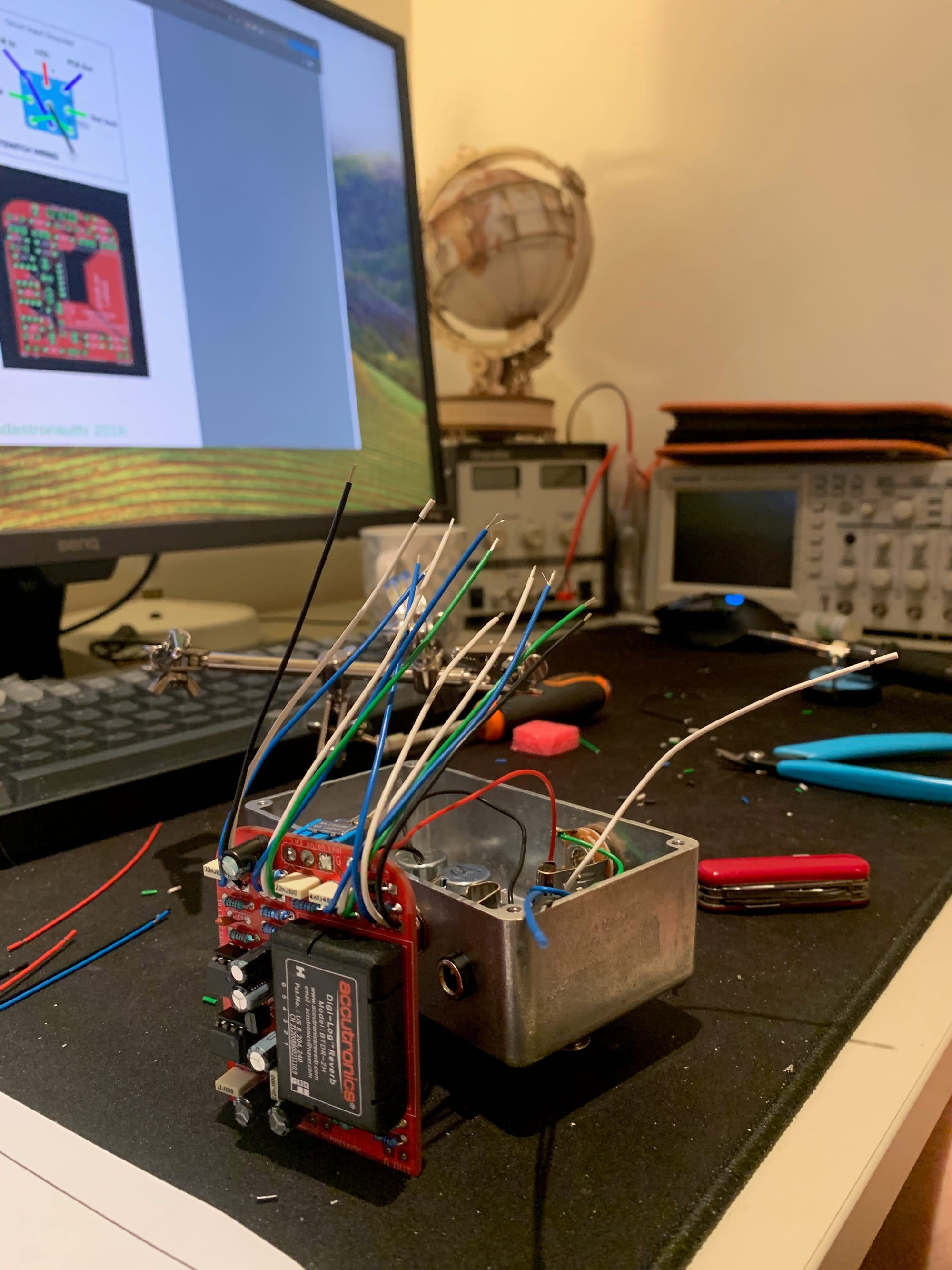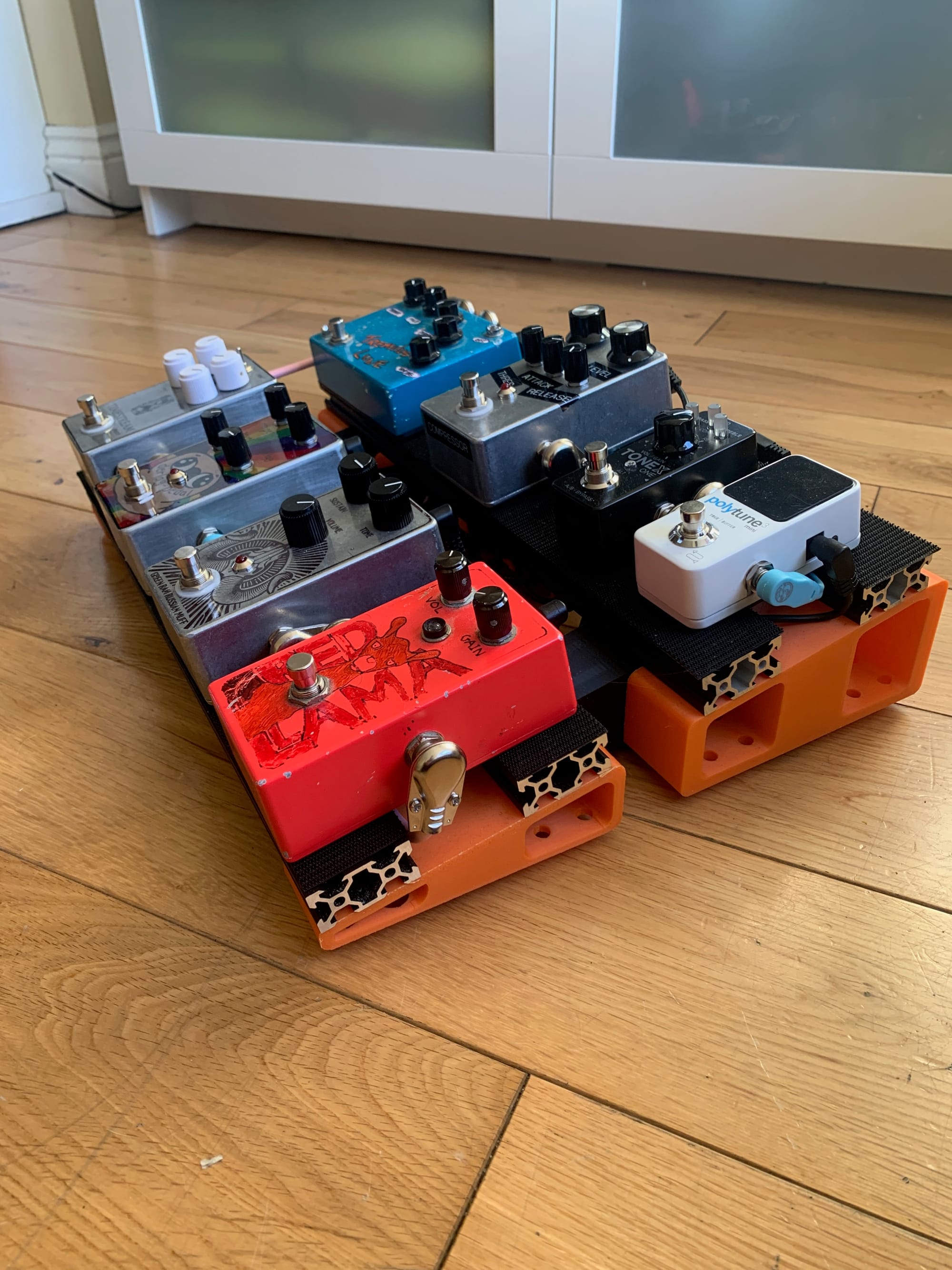 I’ve been slowly building out a fully handmade guitar rig, and this pedalboard is one of the projects I’m most proud of. (Almost) every pedal on it is something I built from scratch—old-school analog circuits, hand-assembled PCBs, custom graphics, and a few hand-painted enclosures for good measure. To tie it all together, I designed and built the board itself using aluminium extrusion and 3D-printed parts, with a tidy battery-powered supply tucked underneath so the whole setup stays portable and clutter-free.
