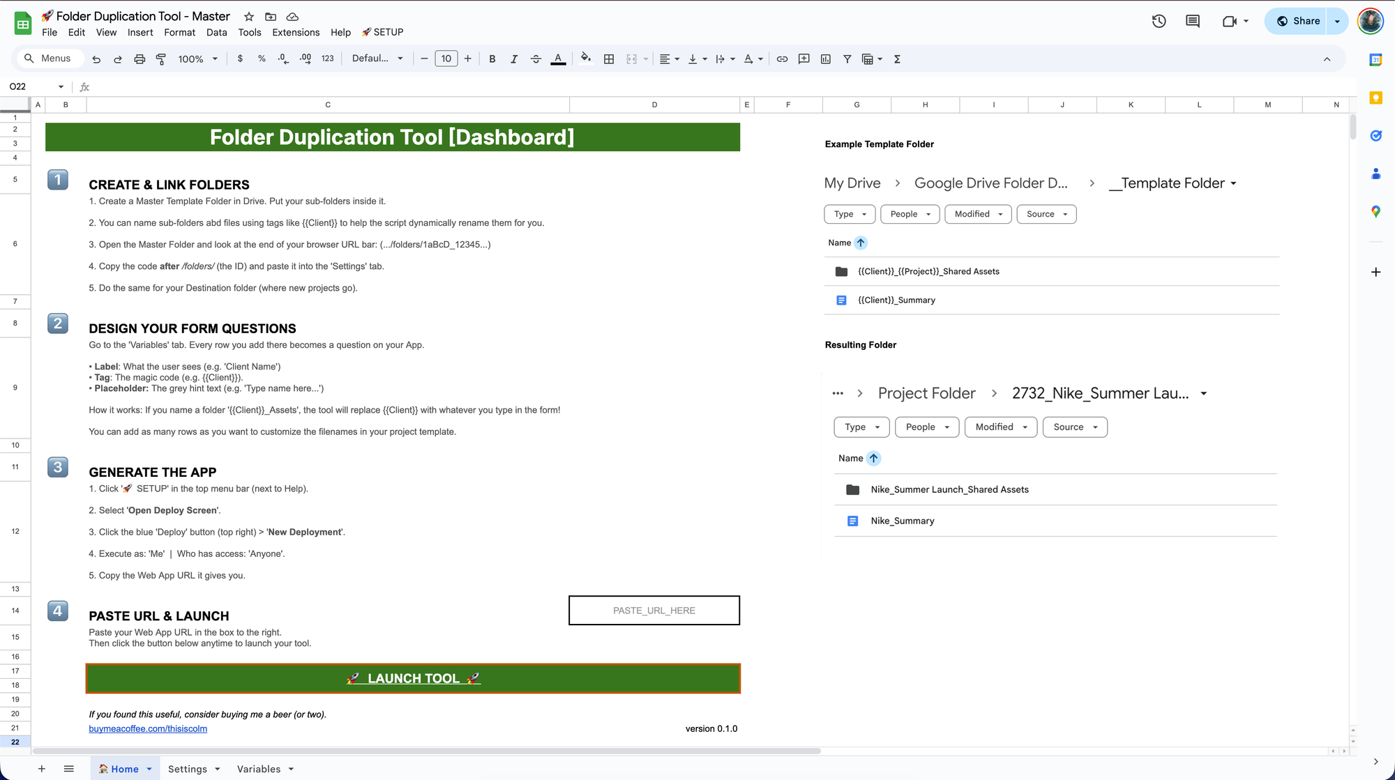 - Paste the IDs of your own Master Folder and Destination Folder.
